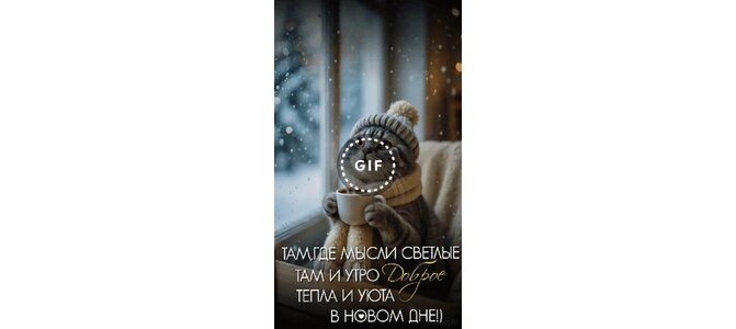 Анимированная открытка "Там, где мысли светлые, там и утро Доброе. Тепла и уюта в новом дне!)"