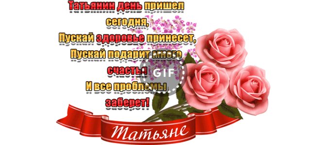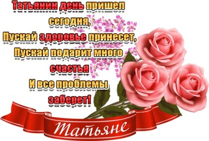 Татьянин день пришел сегодня, пускай здоровье принесет, пускай подарит много счастья и все проблемы заберет! Татьяне