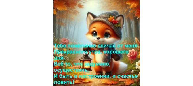 Теги:тебе пожелание сейчас от меня прекрасного утра, хорошего дня всё то, что задумано, осуществить, и быть в настроении, и счастье ловить