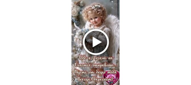 Видеооткрытка "Тебе я Ангела на счастье отправляю... Пусть от беды тебя всегда оберегает!"
