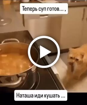 Видеооткрытка "Теперь суп готов... Наташа, иди кушать..."