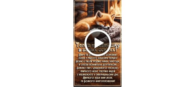 Видеооткрытка "Тепла ТА Затишку В Ваших Оселях!"
