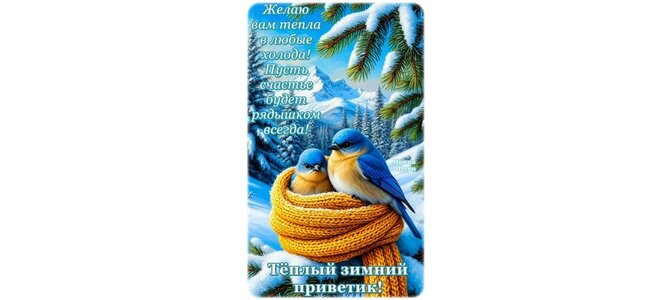 Желаю вам тепла в любые холода! Пусть счастье будет рядышком всегда! Тёплый зимний приветик!