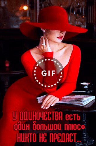 Анимированная открытка "У одиночества есть один большой плюс - никто не предаст..."