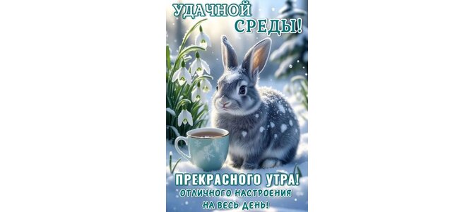 Открытка "УДАЧНОЙ СРЕДЫ! ПРЕКРАСНОГО УТРА! ОТЛИЧНОГО НАСТРОЕНИЯ НА ВЕСЬ ДЕНЬ!"