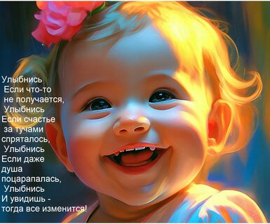 Теги:улыбнись если что-то не получается, улыбнись если счастье за тучами спряталось, улыбнись если даже душа поцарапалась, улыбнись и увидишь - тогда все изменится