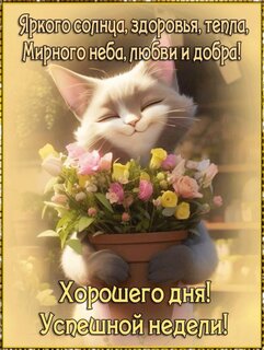 Яркого солнца, здоровья, тепла, мирного неба, любви и добра! Хорошего дня! Успешной недели!