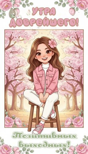 Теги:позитивныхвыходных доброеутро весна иллюстрация девушка цифровоеискусство digitalart весеннеенастроение открытка сакура розовый нейросеть мастерскаяоткрыток 3deffect