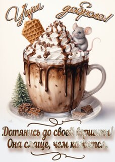 Открытка "Утра доброго. Дотянись до своей вершины. Она слаще, чем кажется."