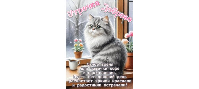 Открытка "Утречка доброго. Самое время для чашечки кофе и вдохновения..."