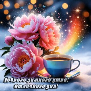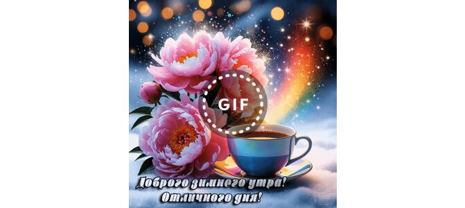 Теги:утро, зимнее утро, чай, цветы, пионы, пожелания на каждый день, гифка, анимация, красивая анимация, снег, зима, лес