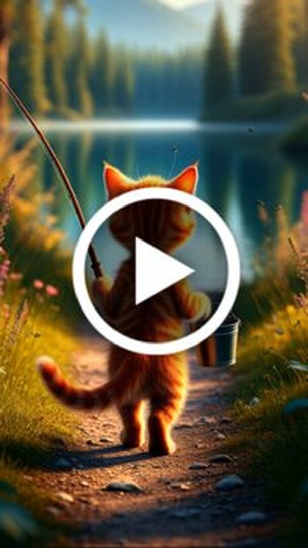 В этом милом видео рыжий котенок отправляется на рыбалку у живописного озера. Сначала малыш идет по тропинке с удочкой и ведерком в лапках. Затем он устраивается у воды и начинает успешно ловить маленьких рыбок. Видео наполнено яркими красками природы и ощущением уюта. В финале после удачного улова котенок сладко спит на мягком диване, полностью довольный прожитым днем. Это добрая и успокаивающая история, которая поднимет настроение.