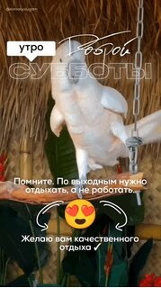 Утро. Доброй субботы. Помните. По выходным нужно отдыхать, а не работать. Желаю вам качественного отдыха.