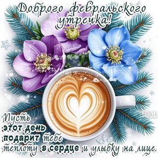 Теги:утро февраля, утро, чашка кофе, кофе, цветы, зима, снег, ель, позитив, улыбка, радость, пожелания на каждый день, красивая картинка