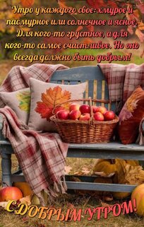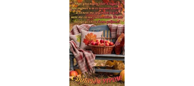 Утро у каждого свое: хмурое и пасмурное или солнечное и ясное. Для кого-то грустное, а для кого-то самое счастливое. Но оно всегда должно быть добрым! С добрый утром!