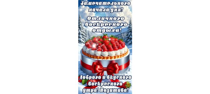 Замечательного начала дня! Отличного воскресного отдыха! Доброго и вкусного воскресного утра. Позитива!