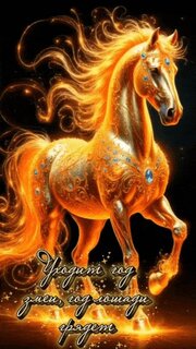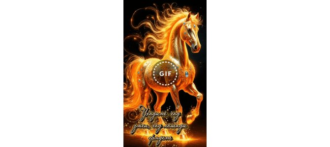 Анимированная открытка "Уходит год змеи, год лошади грядет. Откройте двери, он несет: удачу, счастье и доход!"
