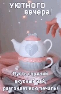 Уютного вечера! Пусть горячий вкусный чай, разгоняет всю печаль!