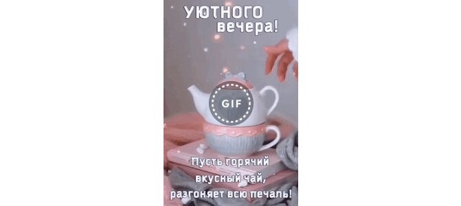 Анимированная открытка "Уютного вечера! Пусть горячий вкусный чай разгоняет всю печаль!"