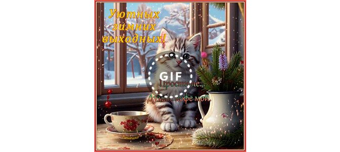 Анимированная открытка "Уютных зимних выходных! Простите.. Думал кофе мой."
