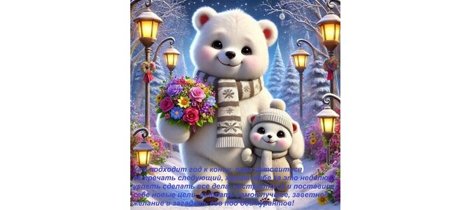 Теги:уже подходит год к концу, пора готовиться встречать следующий, желаю тебе за это неделю успеть сделать все дела, настроиться и поставить себе новые цели, выбрать самое лучшее, заветное желание и загадать его под бой курантов