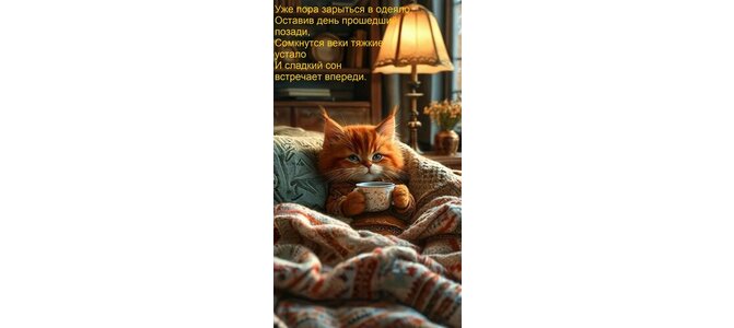 Теги:уже пора зарыться в одеяло, оставив день прошедший позади, сомкнутся, веки, тяжкие, устало, сладкий, сон, встречает, впереди