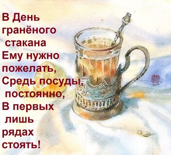 Теги:в день гранёного стакана ему нужно пожелать, средь посуды, постоянно, в первых лишь рядах стоять