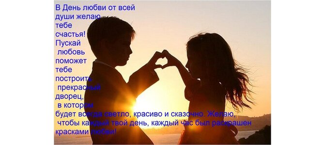 Открытка "В День любви от всей души желаю тебе счастья! Пускай любовь поможет тебе построить прекрасный дворец"