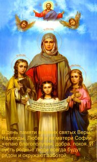 Открытка "В день памяти великих святых Веры, Надежды, Любви и их матери Софии желаю благополучия, добра, покоя."
