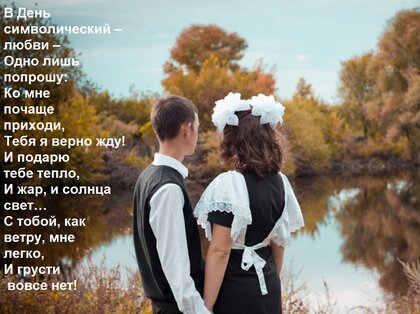 Открытка "В День символический – любви – Одно лишь попрошу: Ко мне почаще приходи, Тебя я верно жду! И подарю"