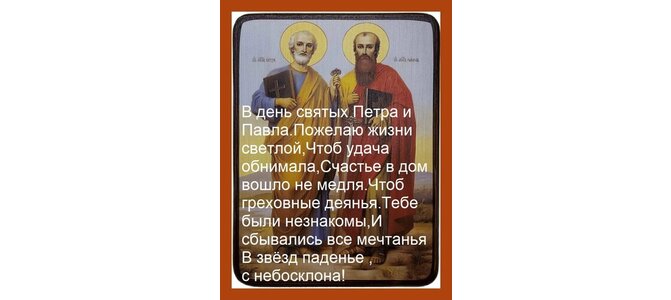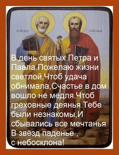 Открытка "В день святых Петра и Павла пожелаю жизни светлой, чтоб удача обнимала, счастье в дом вошло не медля."