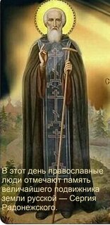 Открытка "В этот день православные люди отмечают память величайшего подвижника земли русской — Сергия Радонежс"