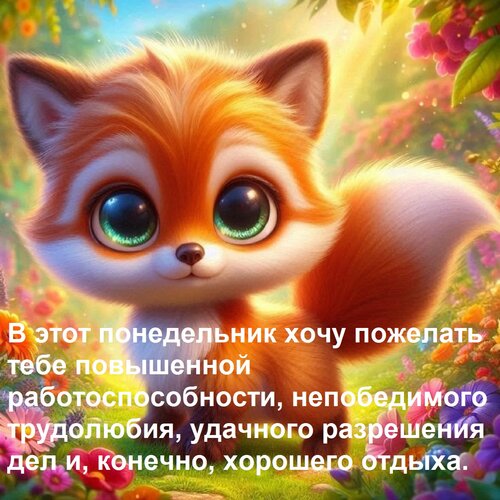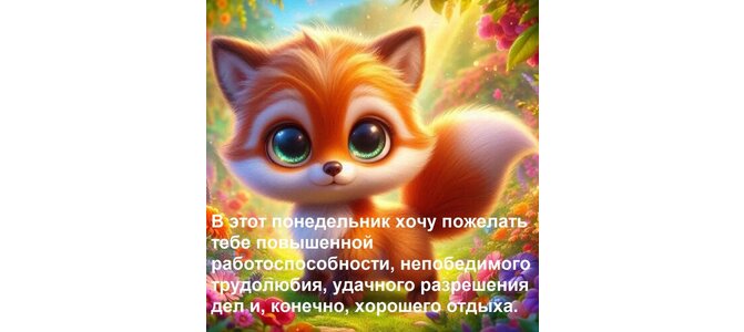 Теги:в этот понедельник хочу пожелать тебе повышенной работоспособности, непобедимого трудолюбия, удачного разрешения дел и, конечно, хорошего отдыха