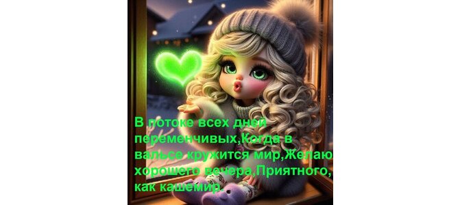 Теги:в потоке всех дней переменчивых, когда в вальсе кружится мир, желаю хорошего вечера, приятного, как кашемир