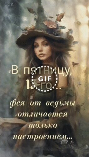 Анимированная открытка "В пятницу 13-го... фея от ведьмы отличается только настроением..."