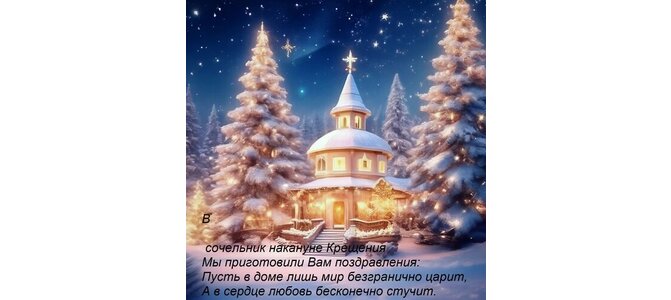 Теги:в сочельник накануне крещения мы приготовили вам поздравления пусть в доме лишь мир безгранично царит, а в сердце любовь бесконечно стучит