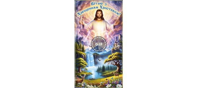 Анимированная открытка "ВІТАЮ З ХРЕЩЕННЯМ ХРИСТОВИМ!"