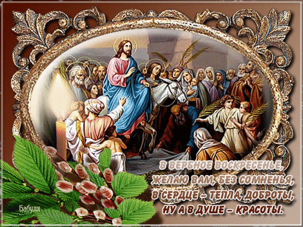 Анимированная открытка "В вербное воскресенье желаю вам без сомненья, в сердце - тепла, доброты."