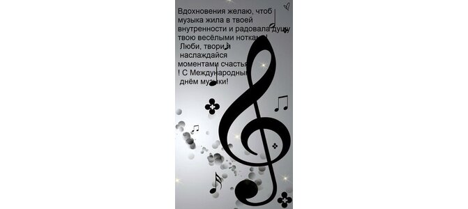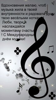 Открытка "Вдохновения желаю, чтоб музыка жила в твоей внутренности и радовала душу твою весёлыми нотками! Люби"