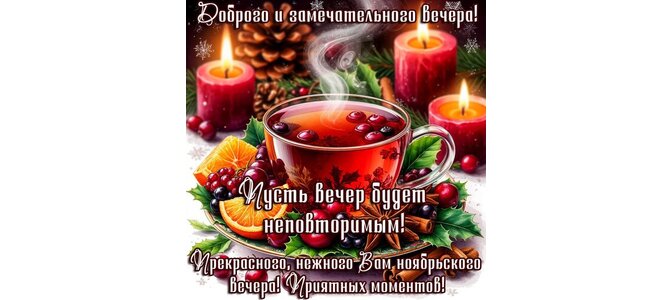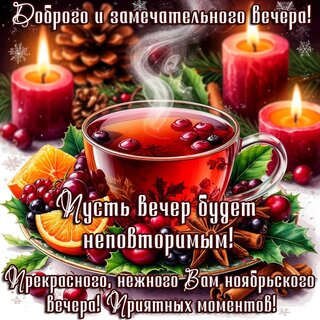 Доброго и замечательного вечера! Пусть вечер будет неповторимым! Прекрасного, нежного вам ноябрьского вечера! Приятных моментов!