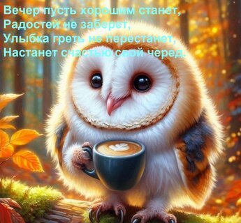 Теги:вечер пусть хорошим станет, радостей не заберет, улыбка греть не перестанет, настанет счастью свой черед