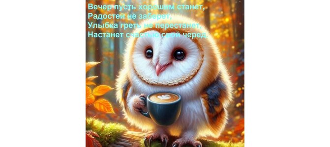 Теги:вечер пусть хорошим станет, радостей не заберет, улыбка греть не перестанет, настанет счастью свой черед