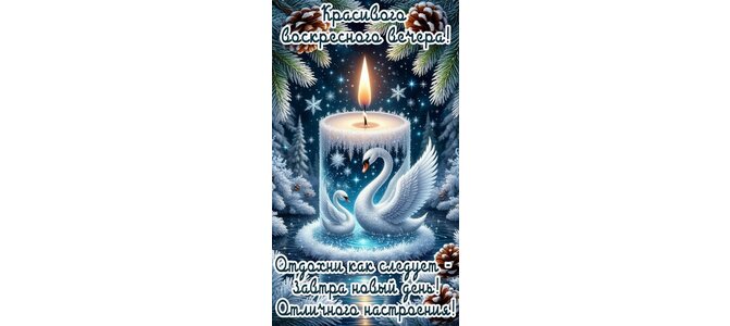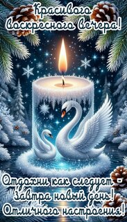 Теги:вечер воскресенья, воскресенье, дни недели добрый вечер, свеча, лебеди, зима, снег, красивая картинка