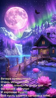 Открытка "Вечера прелестного, Очень интересного Я желаю очень! По итогу дня Он пускай наступит И хорошим будет"