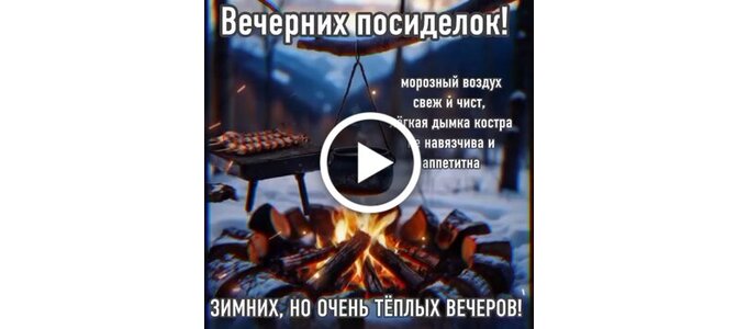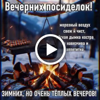 Зимних, но очень теплых вечеров! Вечерних посиделок! Морозный воздух свеж и чист, лёгкая дымка костра не навязчива и аппетитна. Зимних, но очень тёплых вечеров!