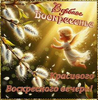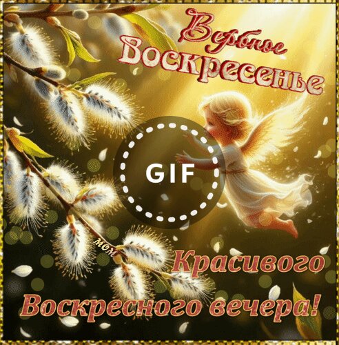 Анимированная открытка "Вербное Воскресенье. Красивого Воскресного вечера!"