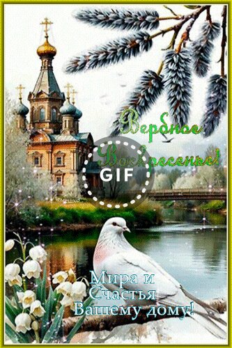 Анимированная открытка "Вербное Воскресенье! Мира и Счастья Вашему дому!"