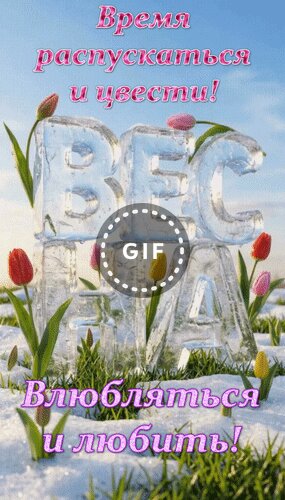 Анимированная открытка "Весна. Время распускаться и цвести! Влюбляться и любить!"