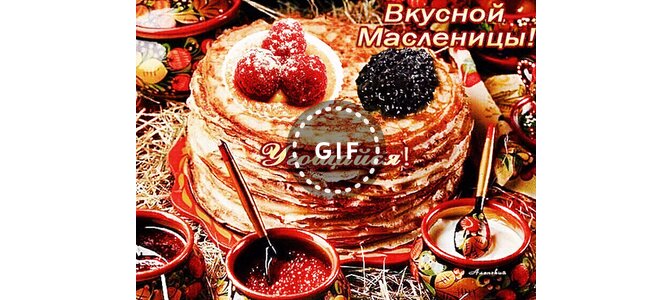 Анимированная открытка "Вкусной Масленицы!"
