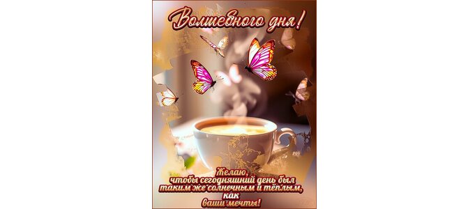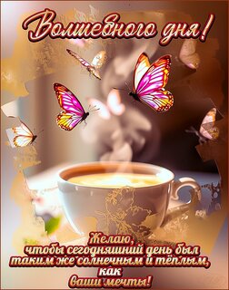 Желаю, чтобы сегодняшний день был таким же солнечным и тёплым, как ваши мечты!